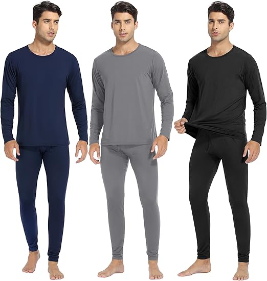 3 Sets Men's Thermal Underwear Set Fleece Lined Long Johns Thermal Underwear Base Layer Set for Men Cold Winter