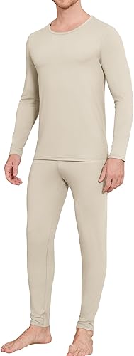 Men Thin Thermal Underwear Set Soft Long Johns Set 2 Pcs Warm Base Layer Top & Bottom for Cold Weather
