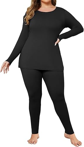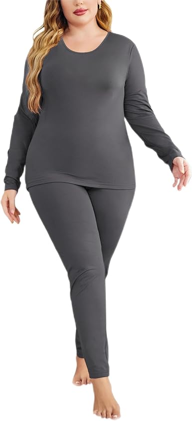 Plus Size Womens Long Underwear Set Oversize Thermal Set Lightweight Base Layer Pajamas 2 PCS Warm Tops & Bottom