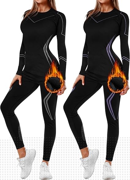 2 Set Women's Thermal Ski Underwear Long Breathable and Warm Johns Base Layer Womens Cold Weather for Women