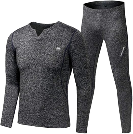 Fleece Long Johns,Sports Thermal Underwear Sets,Autumn Winter Thickening V-Neck Men Warm Suit,Skiing Warm Base Layers