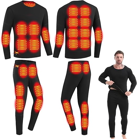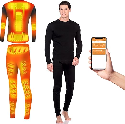 Electric Heated Underwear Set Fleece Lined Thermal Body Suit Men Winter APP Control Temperature Motorcycle Top Pants