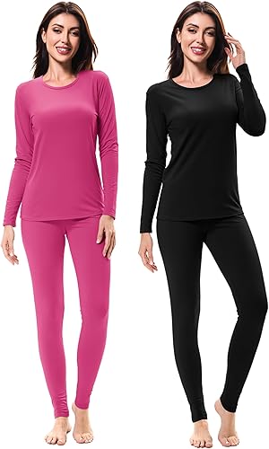 Thermal Underwear for Women Set Long Johns Fleece Lined Soft Cold Weather Warm Base Layer Winter Pajamas Top Bottom