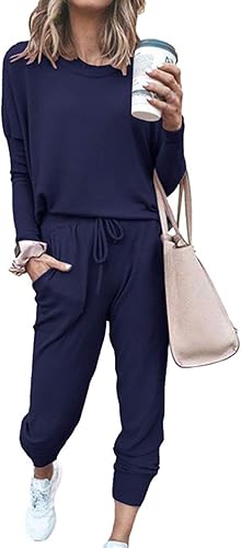 Women's Fall 2 Piece Lounge Outfit Long Sleeve Crewneck Pullover Tops High Waisted Pants Set Tracksuit