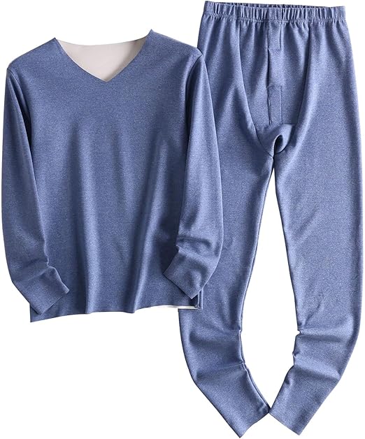 Mens V Neck Thermal Underwear 2 Piece Long Johns Sets Winter Weam Base Layer Tops and Bottom Solid Pajams Outfit