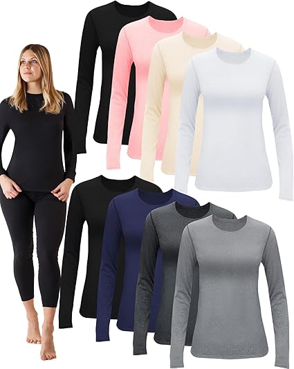 8 Pcs Thermal Underwear for Womens Thermal Top and Bottom Set Thermal Shirts Leggings Base Layer Women Long Underwear
