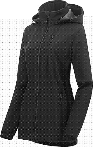 Women's Lightweight Long Softshell Fleece Lined Jacket Anorak Raincoat With Removable Hood