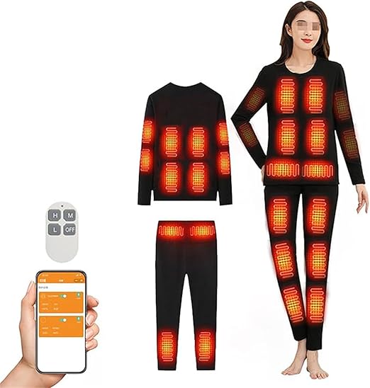 Heating Underwears Set Electric Thermal Base Layer 3 Gear Temperature Heated &App Remote Temperature Control Long