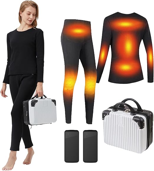 Women's Thermal Underwear Set, USB Electric Thermal Heated Long Johns Set with Power Bank for Outdoor Sports Skiing